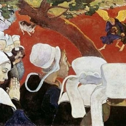 Vision after the sermon (jacob wrestling with the angel) is an oil painting by french artist paul gauguin, completed in 1888.
